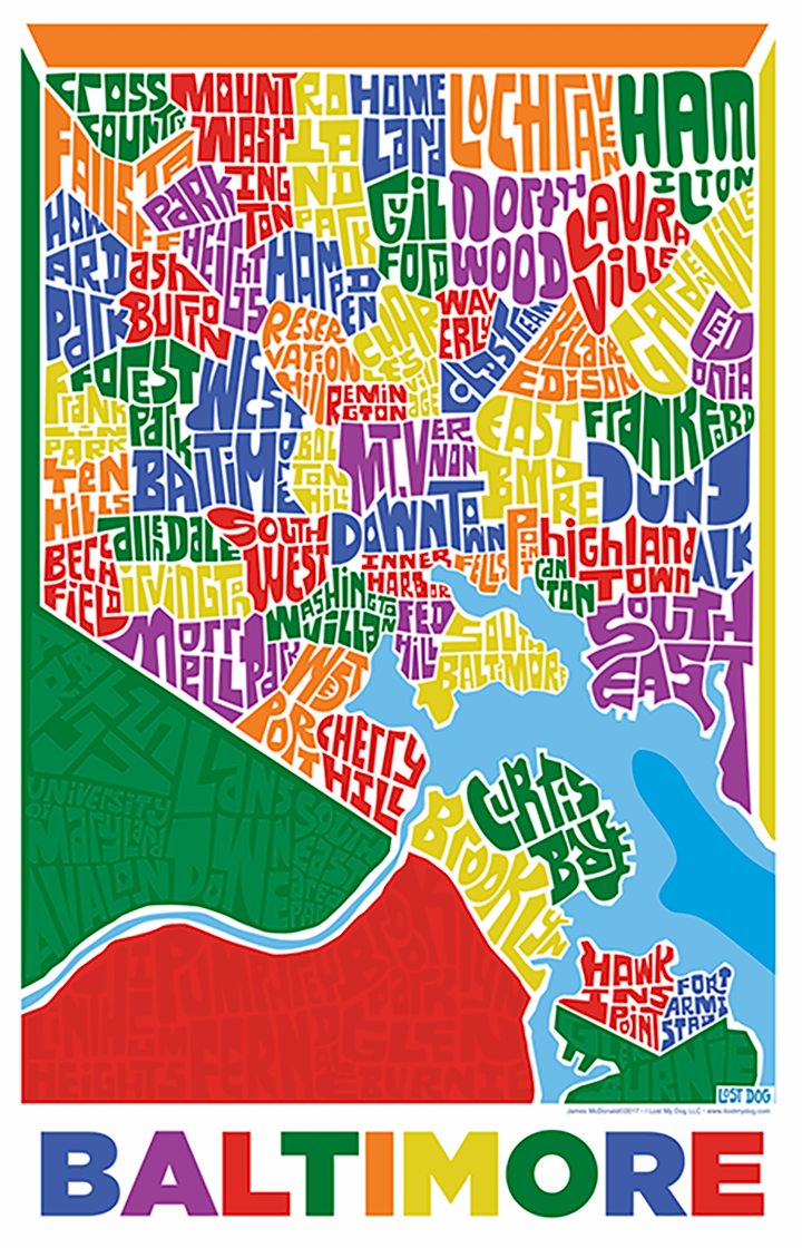 Baltimore Type Map โ LOST DOG Art & Frame