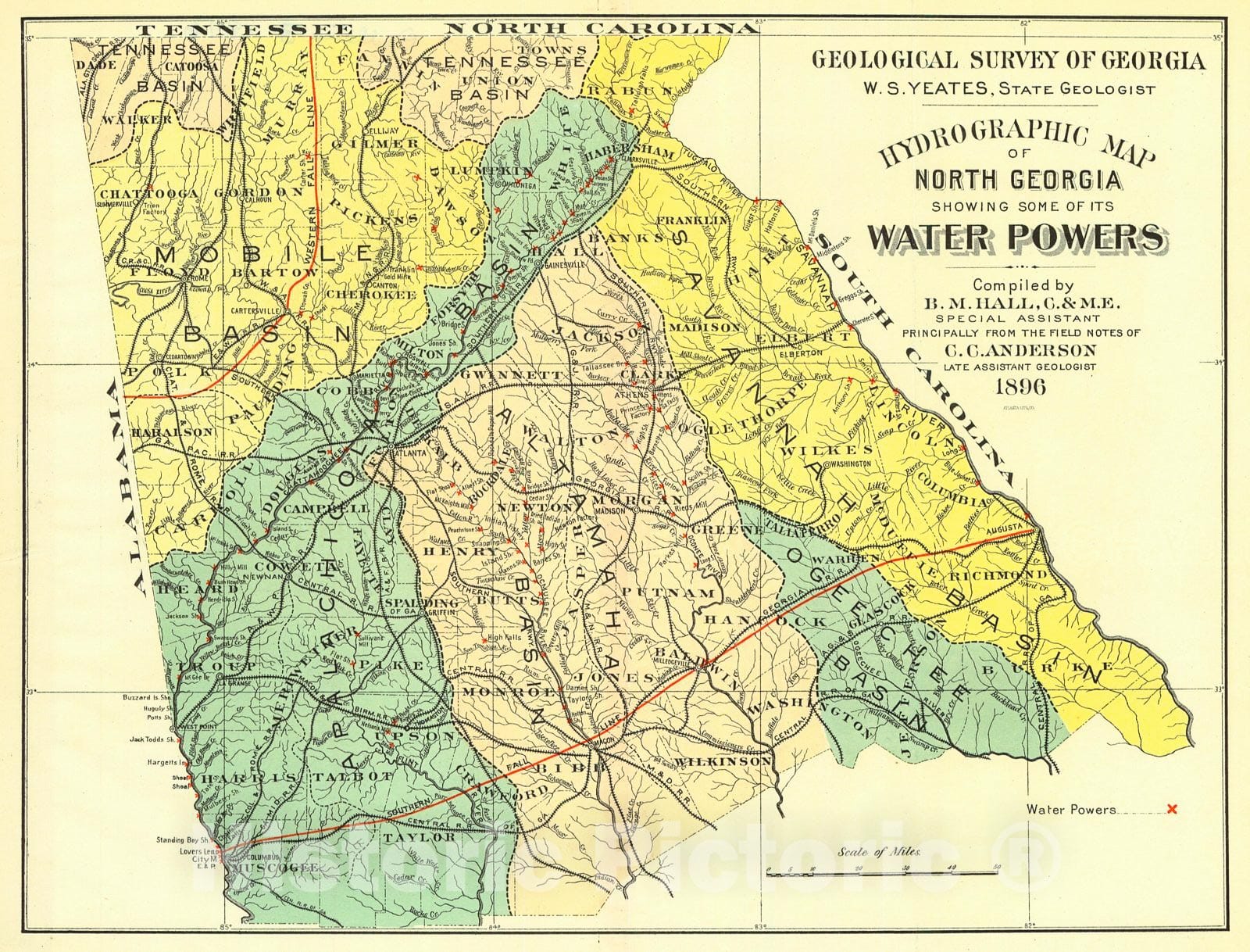 Historic Map : 1896 Hydrographic Map of North Georgia : Vintage